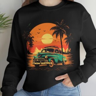 Vintage Sunset Print Unisex Crewneck Sweatshirt – Comfortable Heavy Blend Pullover – Retro Style Casual Wear – All Sizes Available