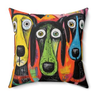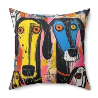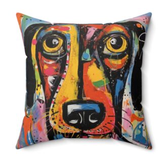 Abstract Dog Art Throw Pillow – Double-Sided Vibrant Color Modern Art Print with Concealed Zipper, Premium Polyester Cover and Pillow