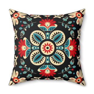 Traditional Folk Art Throw Pillow – Double-Sided Symmetric Folklore Print with Concealed Zipper, Luxurious Polyester Cover and Pillow