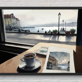 Morning Coffee in Oslo, Norway – Beautiful Watercolor Digital Print Wall Art Poster