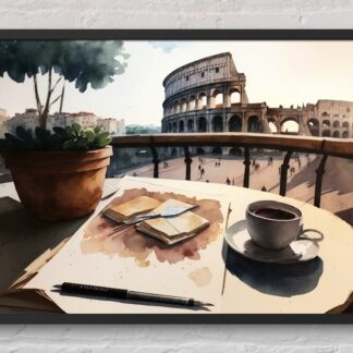 Morning Coffee in Rome, Italy – Beautiful Watercolor Digital Print Wall Art Poster