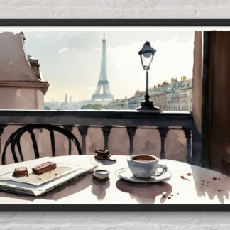 Morning Coffee in Paris, France – Beautiful Watercolor Digital Print Wall Art Poster