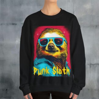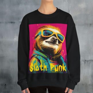 80s Sloth Punk Graphic Sweatshirt – Soft & Comfortable Unisex Crewneck Pullover with Edgy Neon Punk Art Print