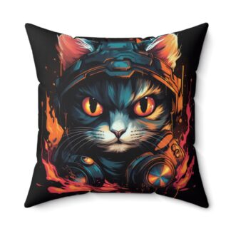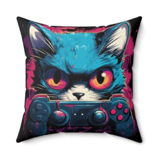 EpicGamer Kitten Throw Pillow – Double-Sided Cat Gamer Print with Concealed Zipper, Polyester Cover and Pillow