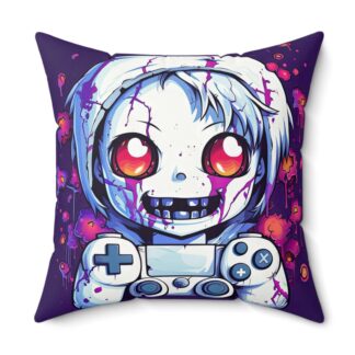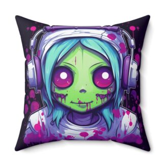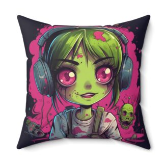 Zombie Gamer Girl Throw Pillow – Double-Sided Undead Gamer Chick Print with Concealed Zipper, Polyester Cover and Pillow