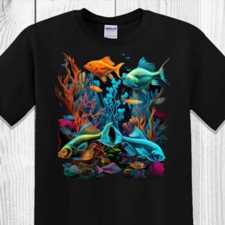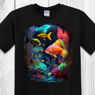 Get Hooked on our Gorgeous Aquarium Image T-Shirts: Featuring Colorful Coral Reefs and Stunning Fish for Your Wardrobe
