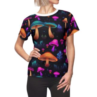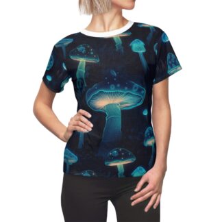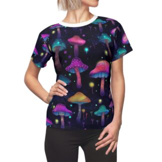 Magical Glowing Mushrooms T-Shirt – All-Over Print, Nature-Inspired, Unisex Tee, Gift for Nature Lovers, Sizes XS-3XL