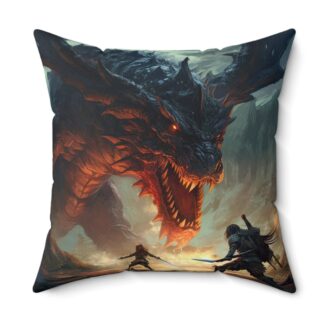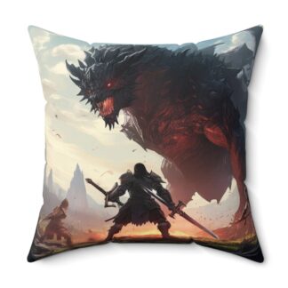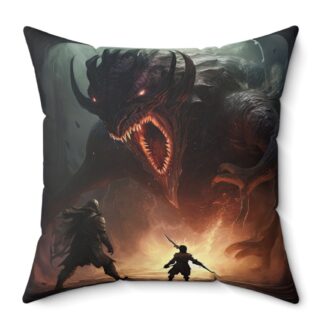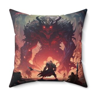 Epic Endboss Battle Throw Pillow – Double-Sided RPG Gamer Print with Concealed Zipper, Polyester Cover and Pillow