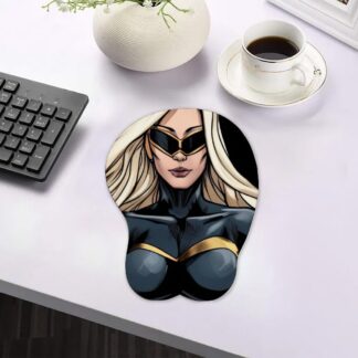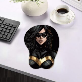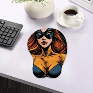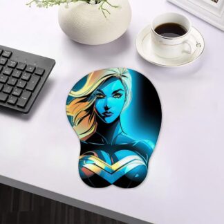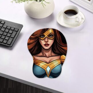 Female Superhero Oppai Mousepad with Wrist Support, Ergonomic Silicone Mouse Pad, Waterproof Office Accessory, Unique Gift Idea,