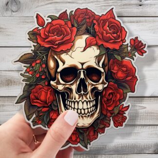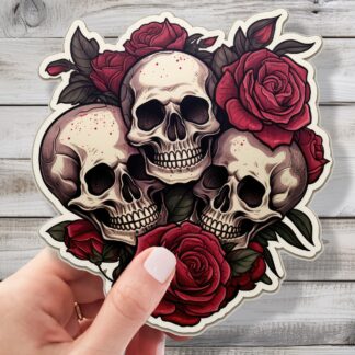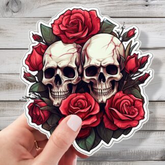 Skulls and Roses Sticker – A Dance of Life and Death Gothic Vinyl Sticker Decal