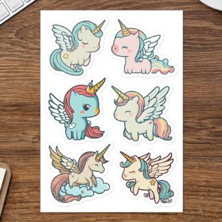 6 Heavenly Cute Unicorn Guardian Angel Stickers to Decorate Your Belongings – Hight Quality Vinyl Sticker Pack Sheet
