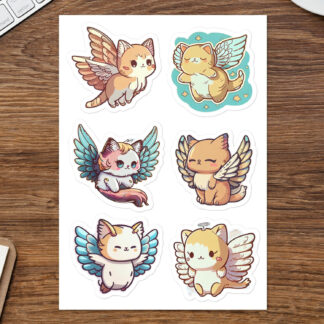 6 Heavenly Cute Kitten Guardian Angel Stickers to Decorate Your Belongings – Hight Quality Vinyl Sticker Pack Sheet