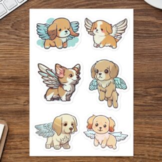 6 Heavenly Cute Puppy Guardian Angel Stickers to Decorate Your Belongings – Hight Quality Vinyl Sticker Pack Sheet