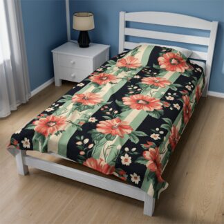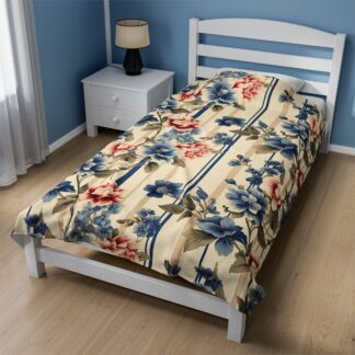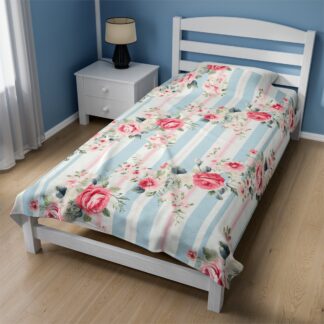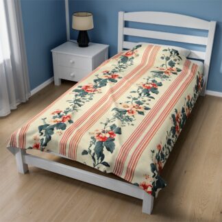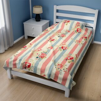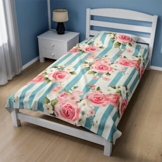 Super Cozy Shabby Chic Velveteen Plush Blanket – Ultra-Soft Touch – Vintage Floral Country Charm – Available in Three Size