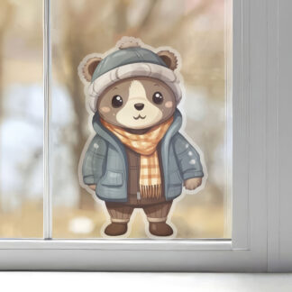 Cuddly Winter Bear Window Sticker – Charming Seasonal Decor, Durable Vinyl, 5 Sizes