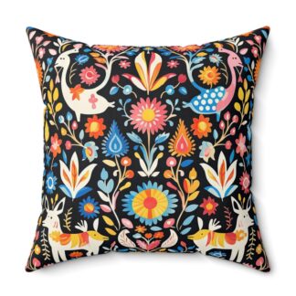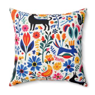 Otomi Art Throw Pillow – Double-Sided Enchanting Folklore Print with Concealed Zipper, Luxurious Polyester Cover and Pillow