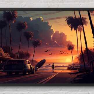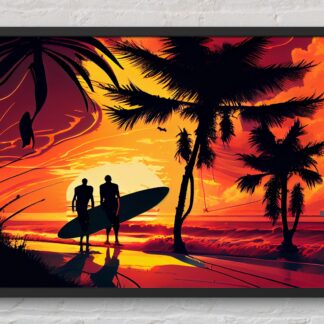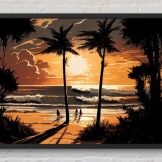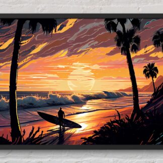 Sunset Surfer Paradise Wall Art Print – Gorgeous Sunset Beach Surfing Wall Art Poster