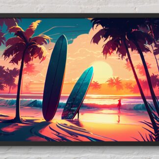 Lively Sunset Surf Wall Art for Surf Lovers – Gorgeous Sunset Beach Surfing Wall Art Poster