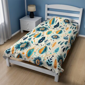 Super Cozy Boho Velveteen Plush Blanket – Ultra-Soft Touch – Vintage Eclectic Charm Elegance – Available in Three Size