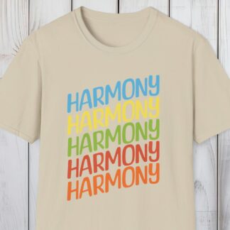 Vibrant Harmony Crewneck T-Shirt – Rainbow Typography Text Shirt – Eco-Friendly Vintage Cotton T-Shirt Gift – 8 Stylish Trendy Colors