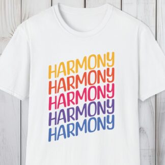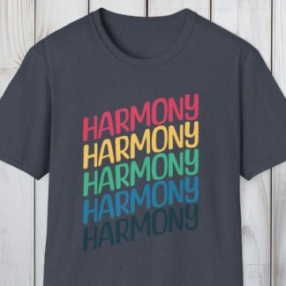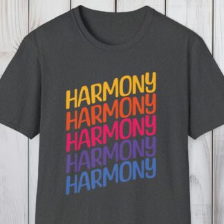Vibrant Harmony Crewneck T-Shirt: Rainbow Typography Text on Soft, Eco-Friendly Vintage Cotton – Perfect T-Shirt Gift – 8 Fashionable Colors