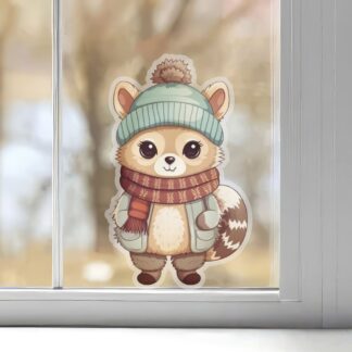 Wintry Raccoon Window Decal – Heartwarming Home Decor, Durable Vinyl, Select Your Size
