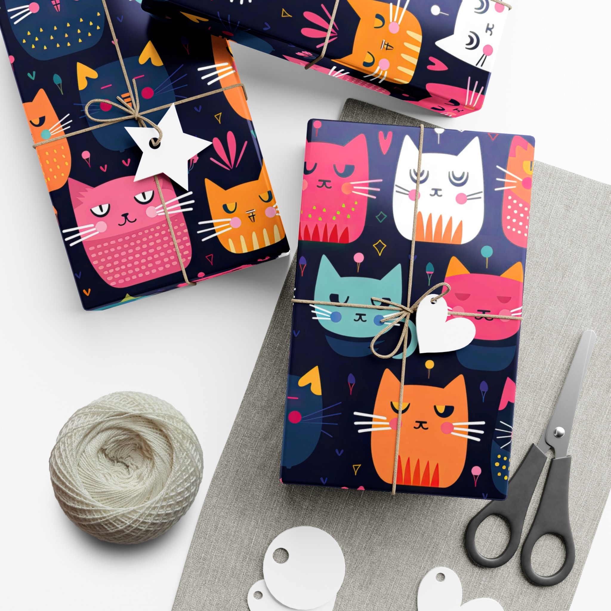 Adorable Cat Gift Wrap Paper – Eco-Friendly & Stylish High Quality Vibrant Print in Satin or Matte Finish