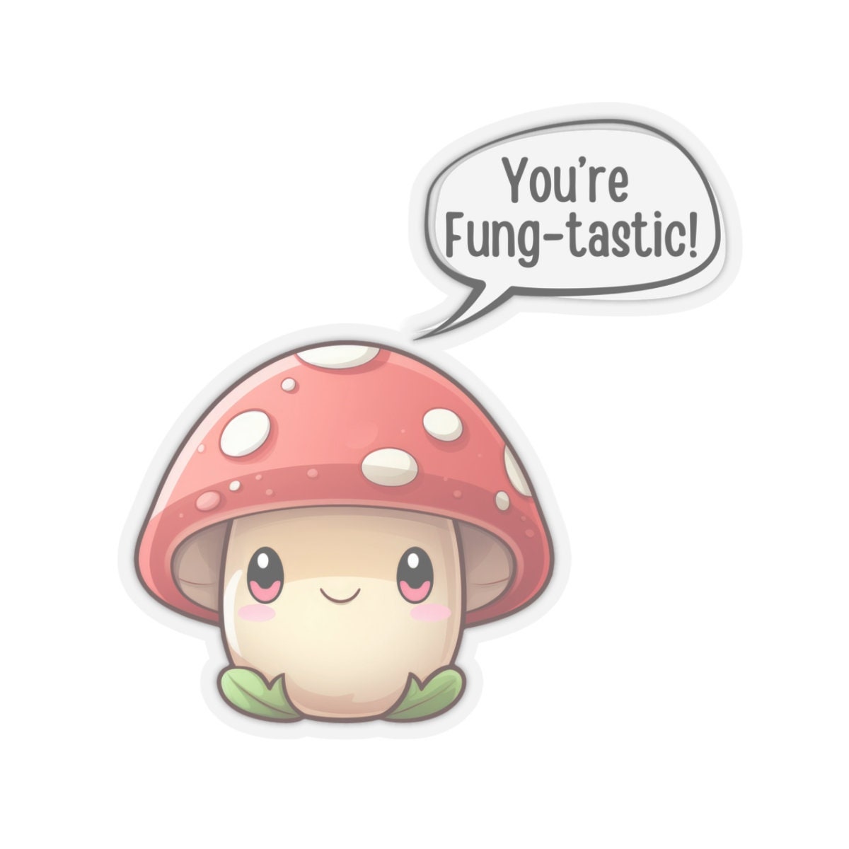 Enlighten your day with our delightful 'You’re Fung-tastic!' mushroom sticker. This adorable fungi friend brings a spore of positivity and a whimsical pun that’s perfect for nature lovers, kawaii enthusiasts, or anyone needing a little boost of encouragement.