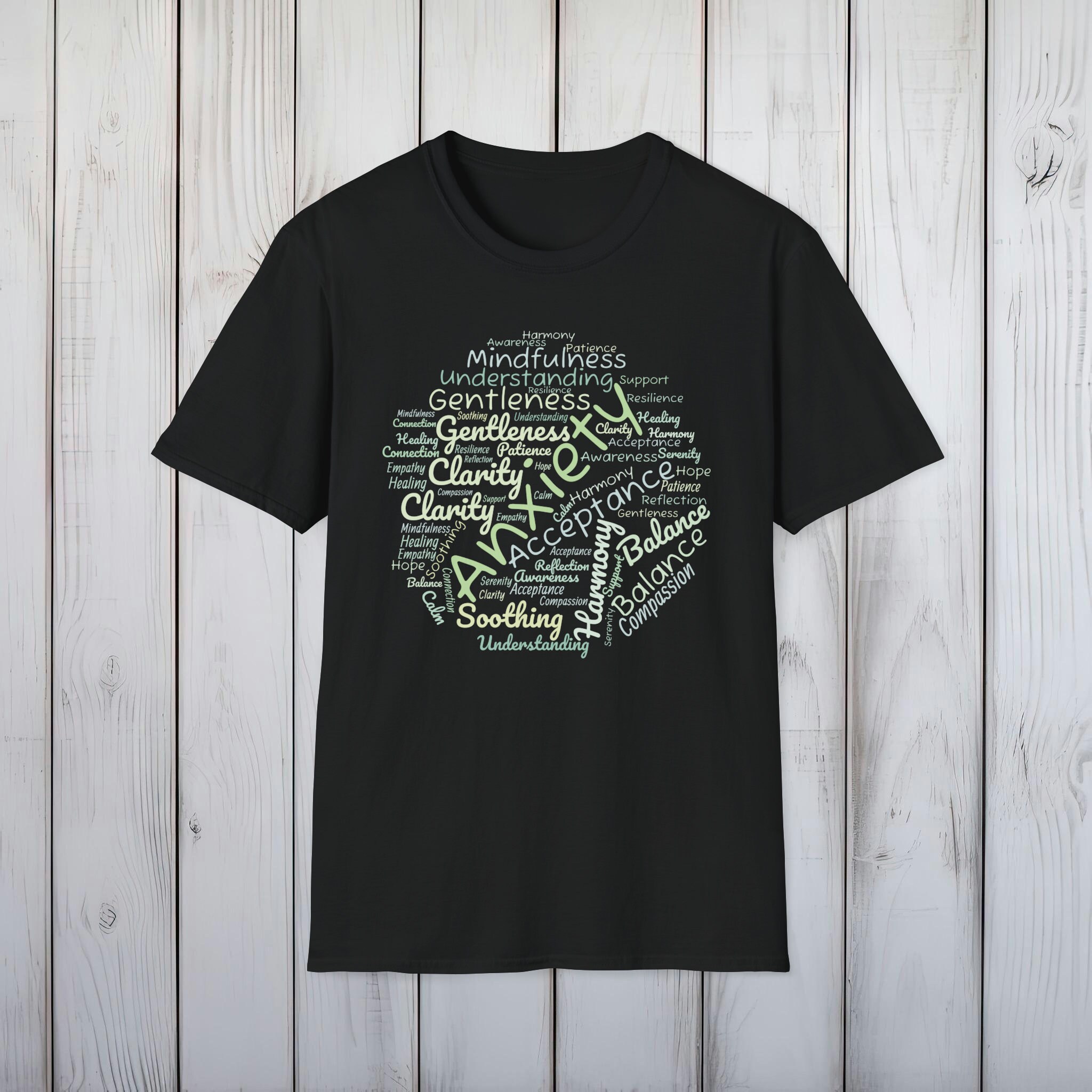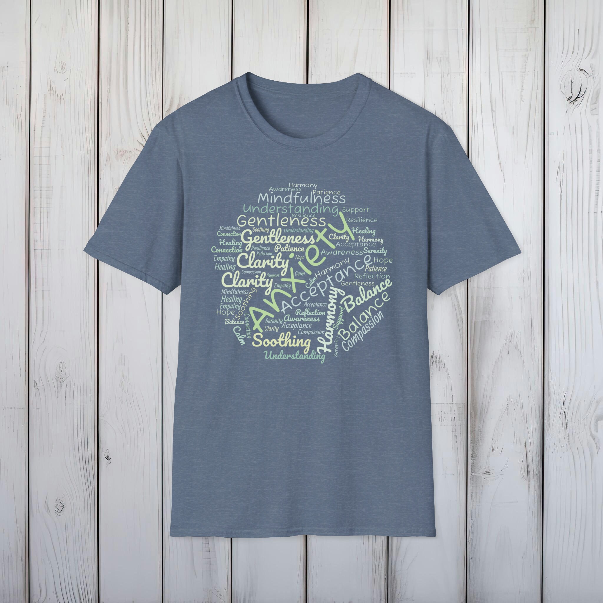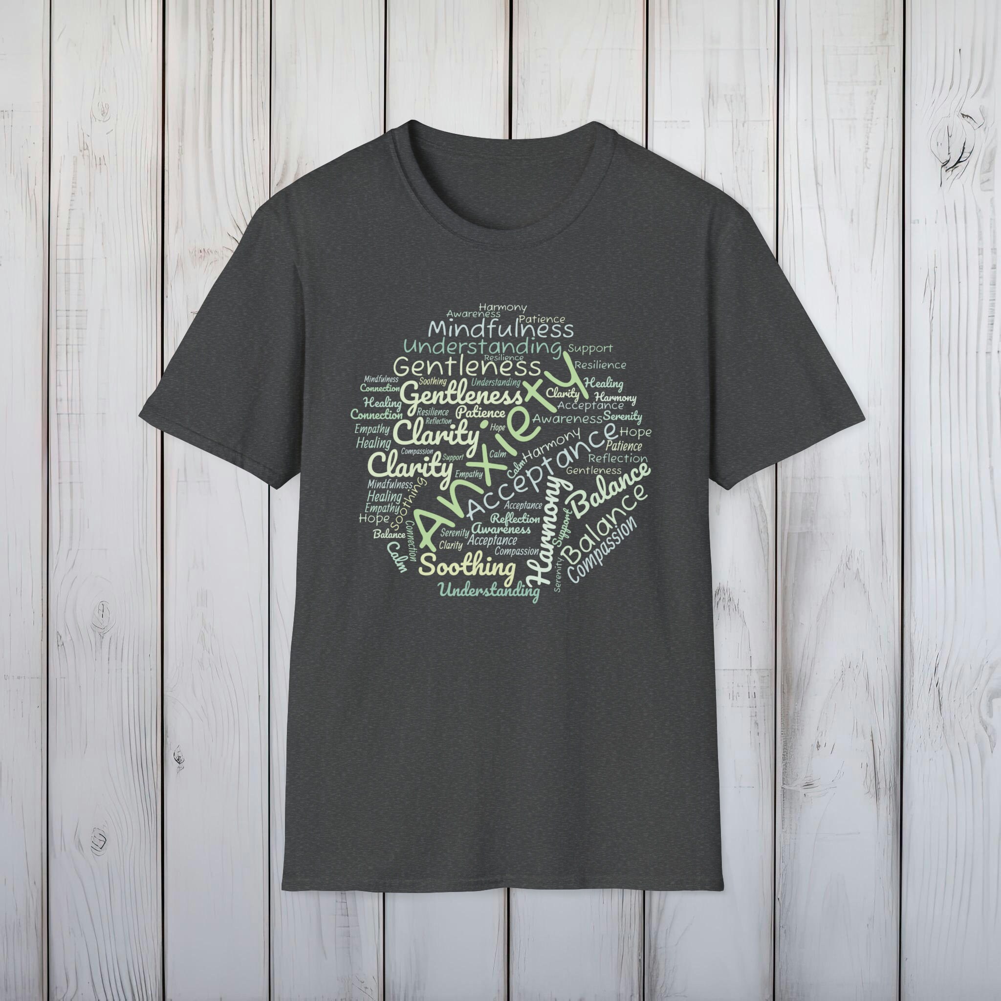 Choosing this anxiety awareness T-shirt means you are part of a compassionate community that values understanding and support. It's more than just a piece of clothing; it's a statement of advocacy, a beacon of hope for those who face the challenges of anxiety every day. Wear it to raise awareness, show support, or as a reminder that gentleness and acceptance can make a profound difference in the journey to mental wellness.