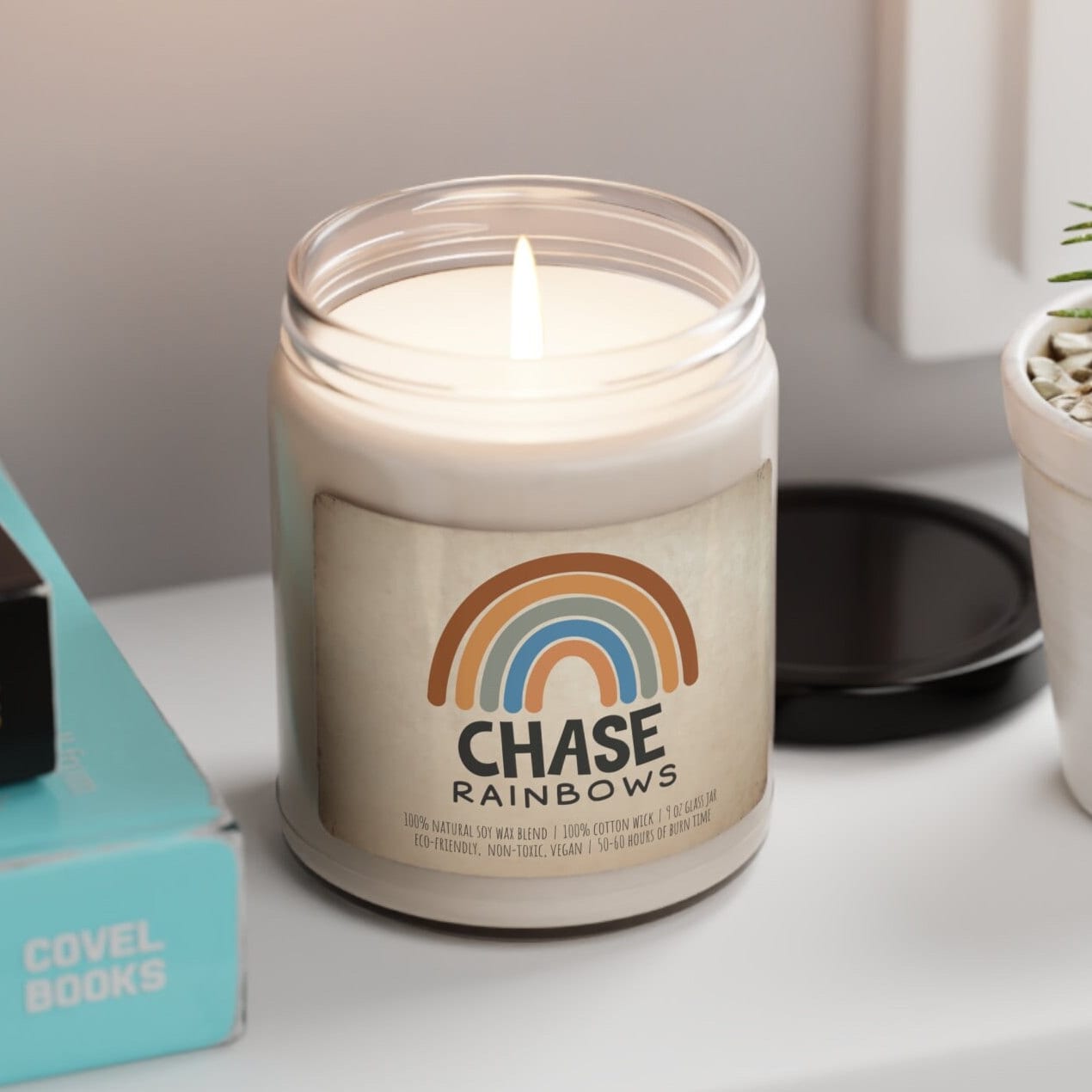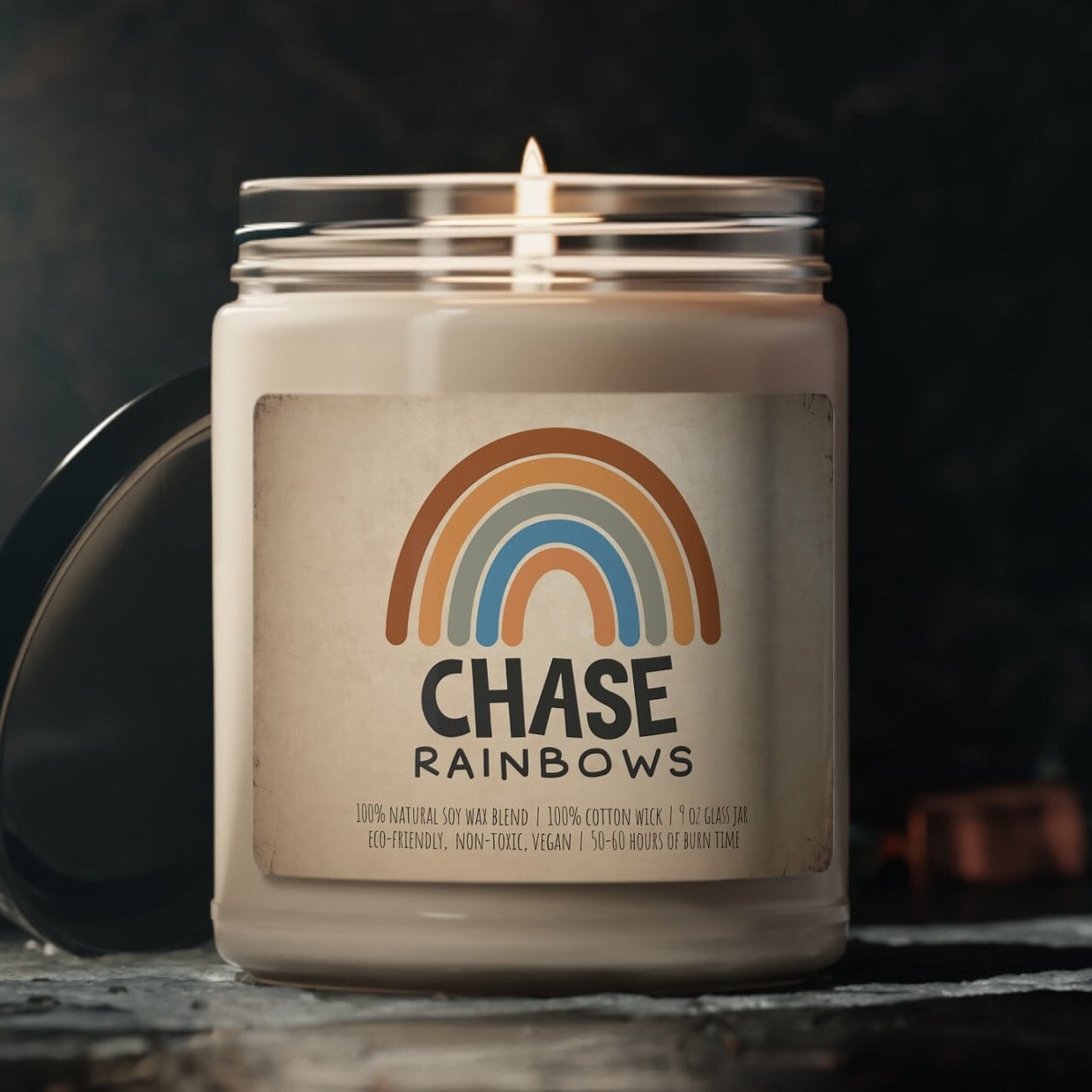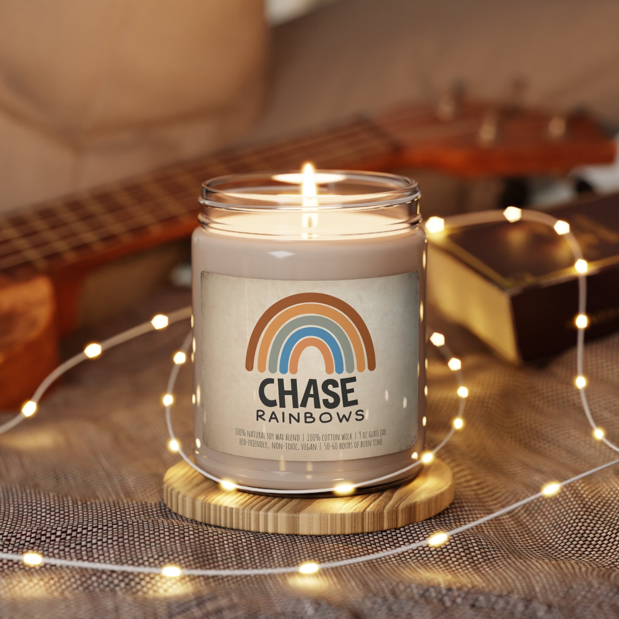 Bask in the whimsical charm of our Boho Scented Soy Candle, a radiant beacon of joy for your home. The 'Chase Rainbows' design embodies a spirit of hope and adventure, inviting you to a world where dreams are as vivid as the colors of a rainbow. This 9oz candle is more than just a delightful fragrance; it's an invitation to a cheerful and stylish lifestyle.