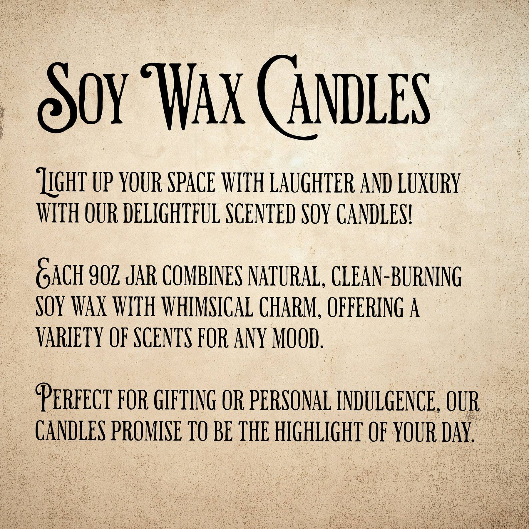 – Materials: Composed of a 100% natural soy wax blend for an eco-conscious burn.