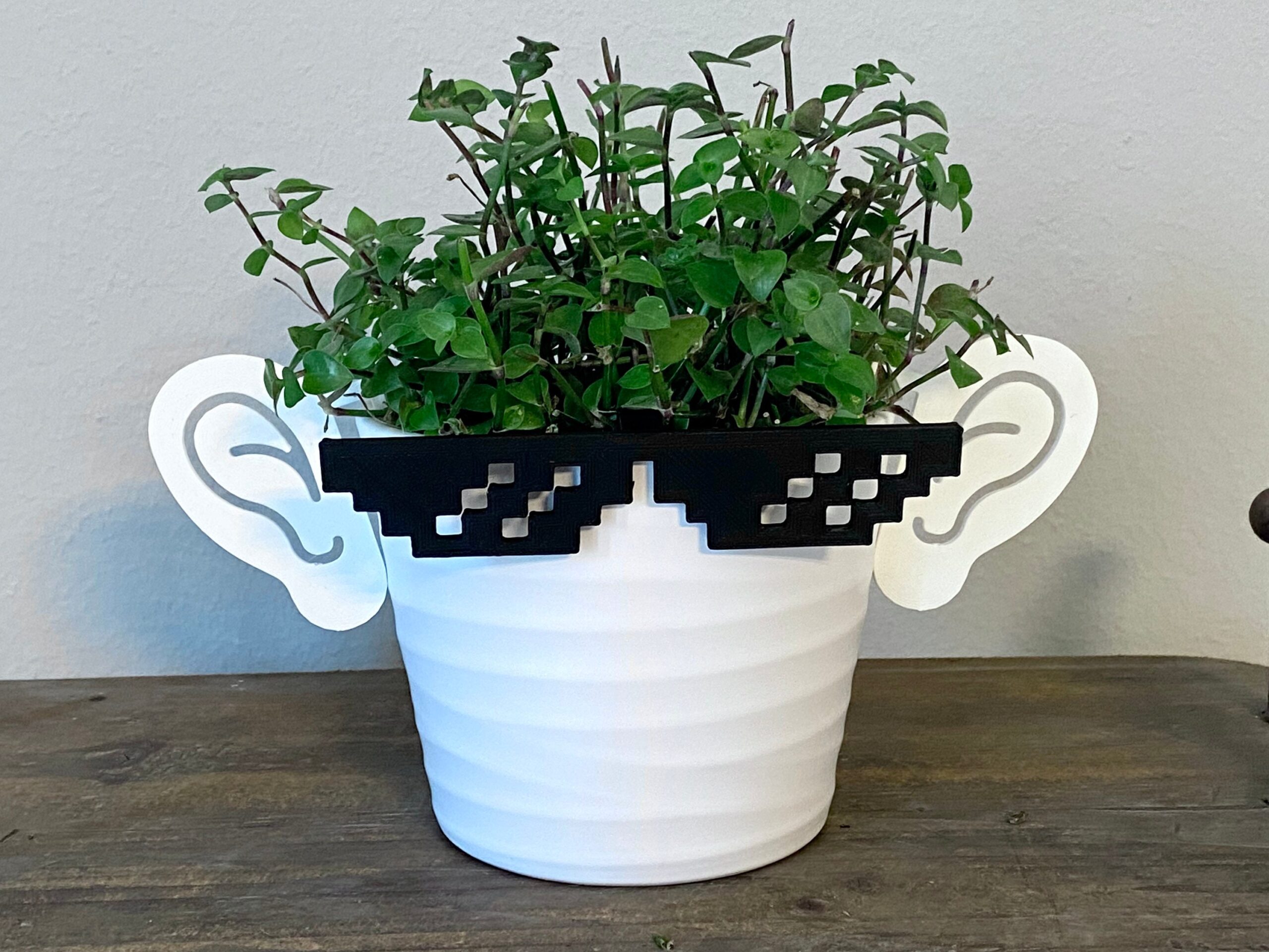 Cool Planter 8-Bit Shades & Ears Attachment / Planter Pot Decoration for Indoor and Outdoor
