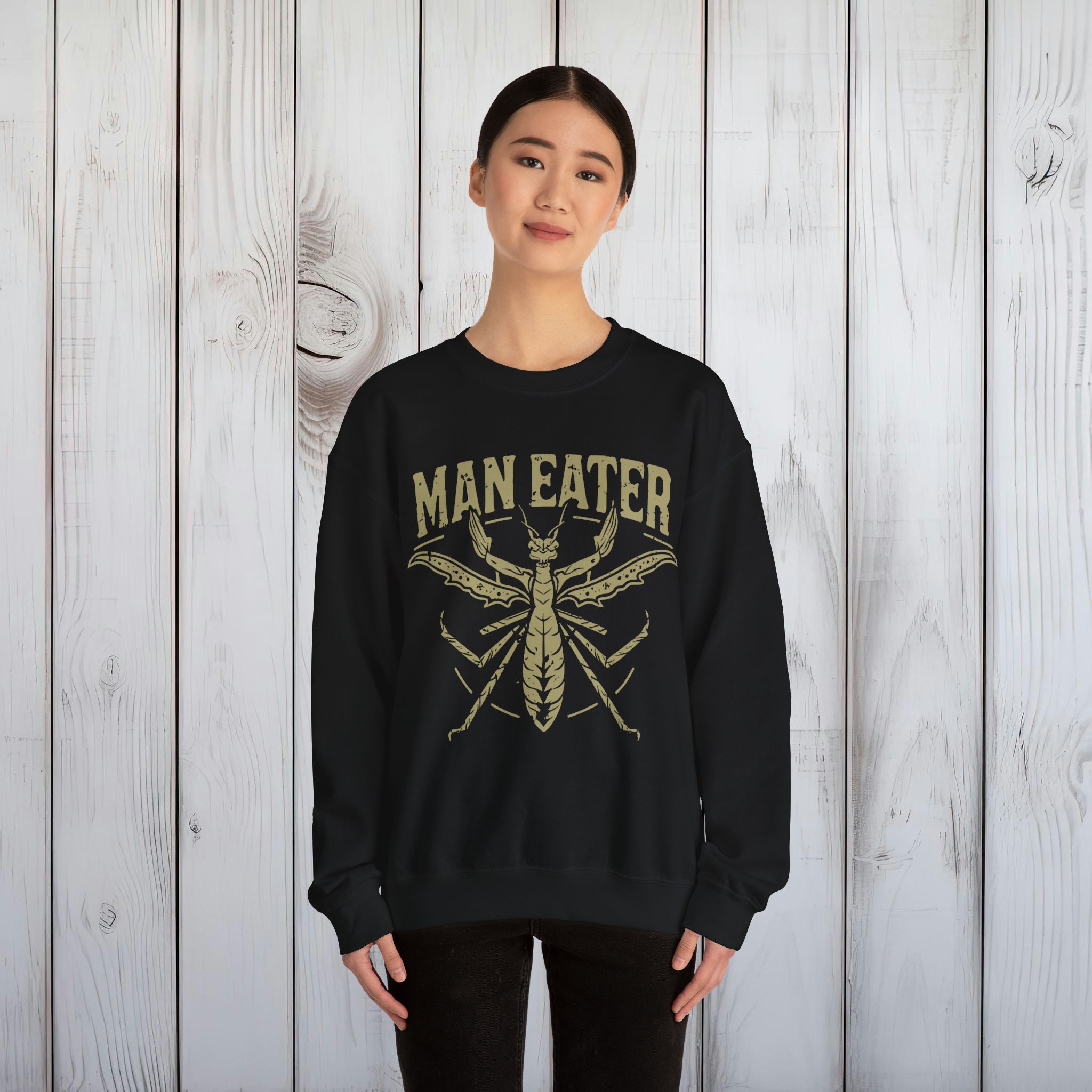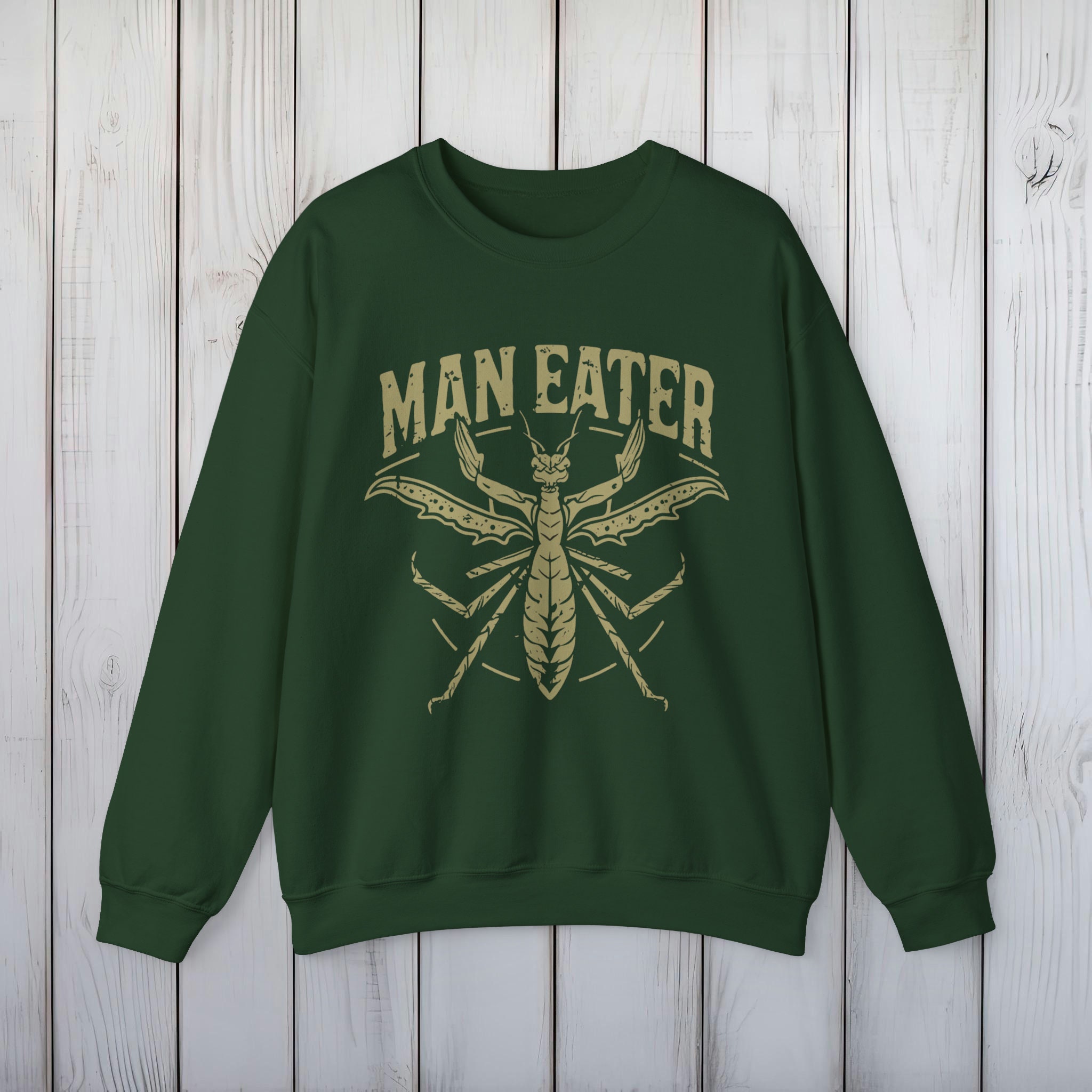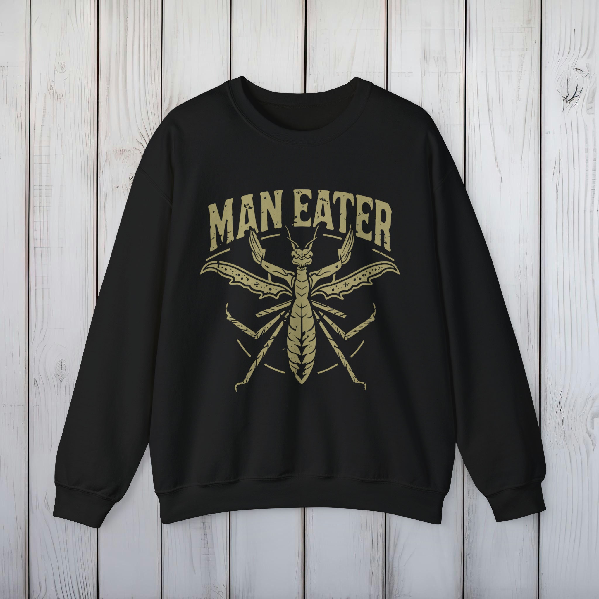 Epic "Man Eater" Mantis Sweatshirt – Eco-Friendly, Soft & Comfortable Crewneck Pullover – Bold Statement Print – 3 Colors Available