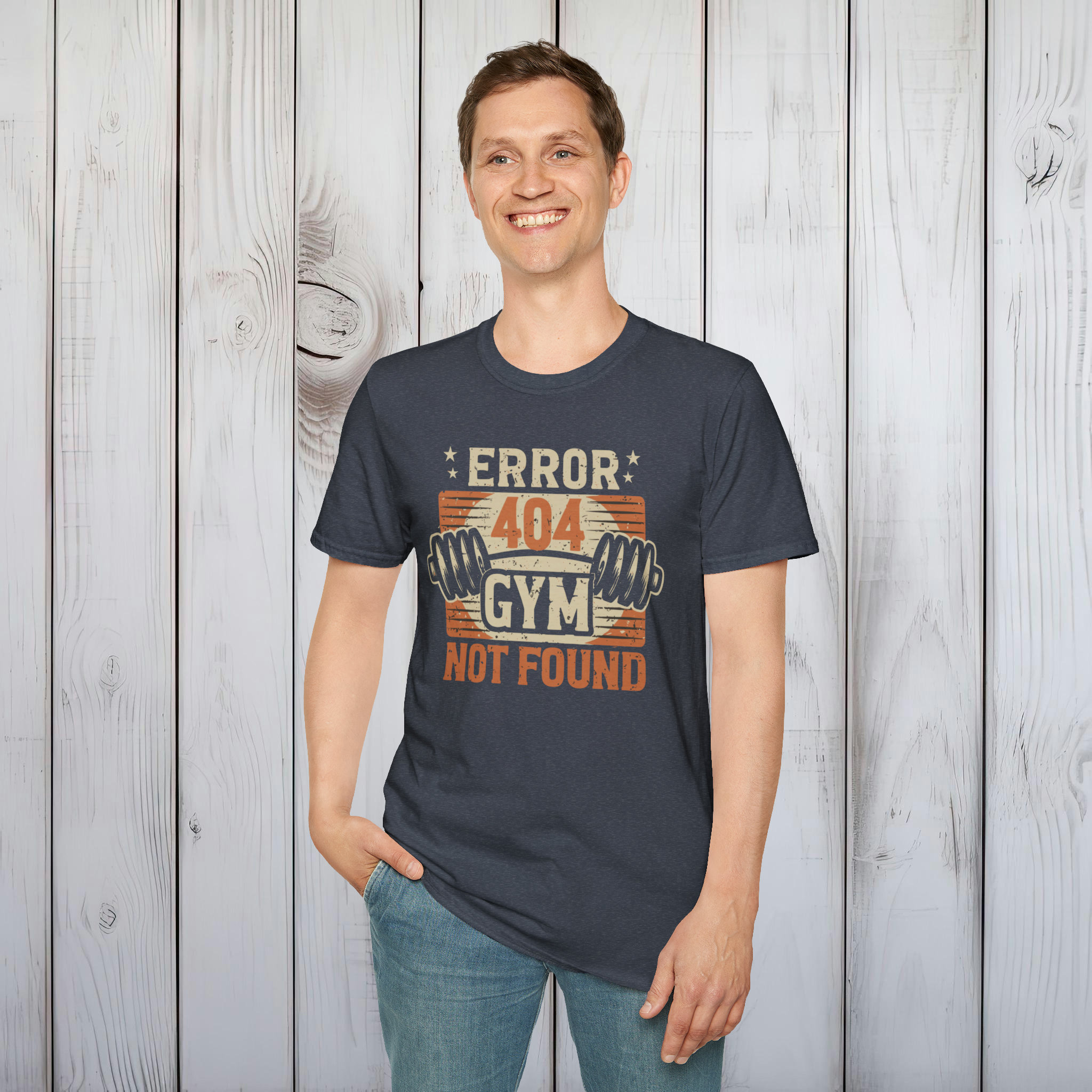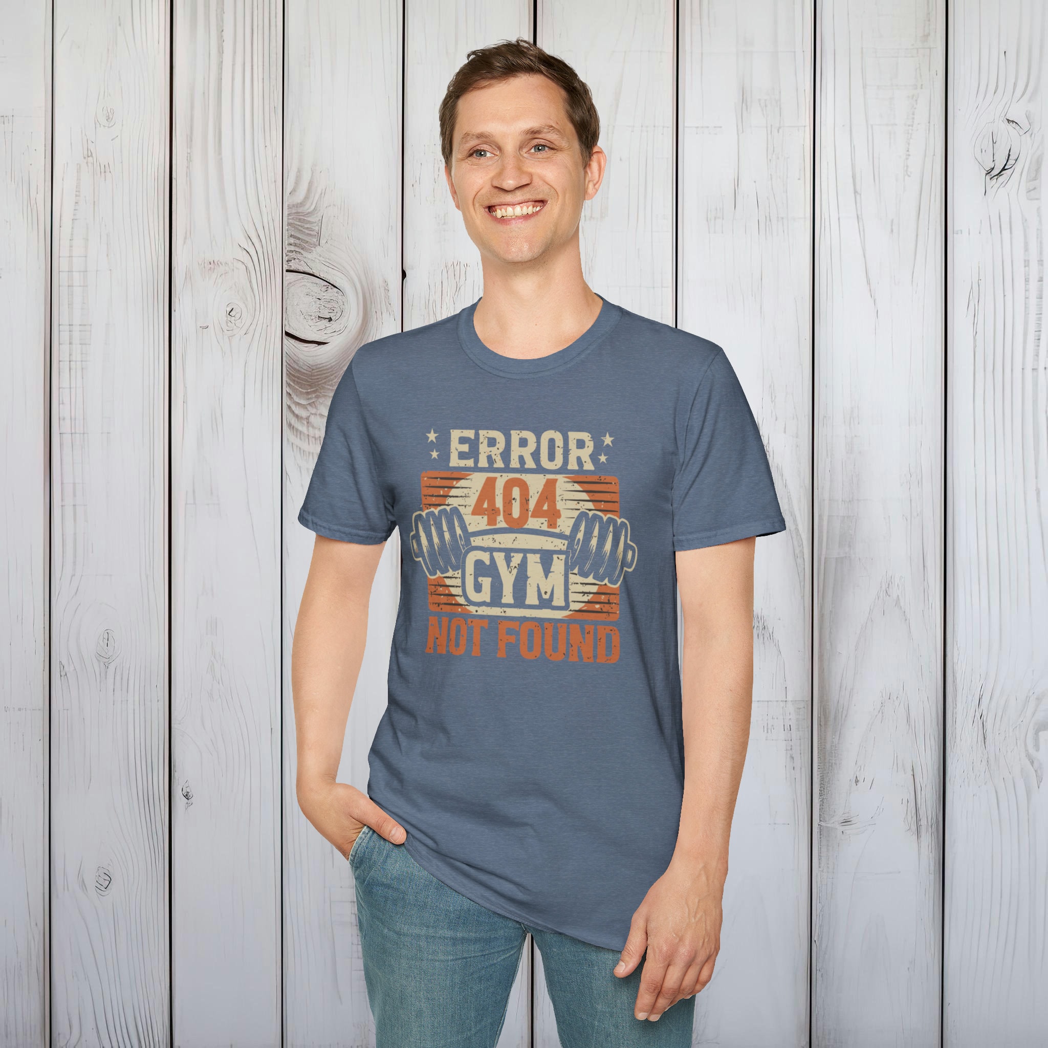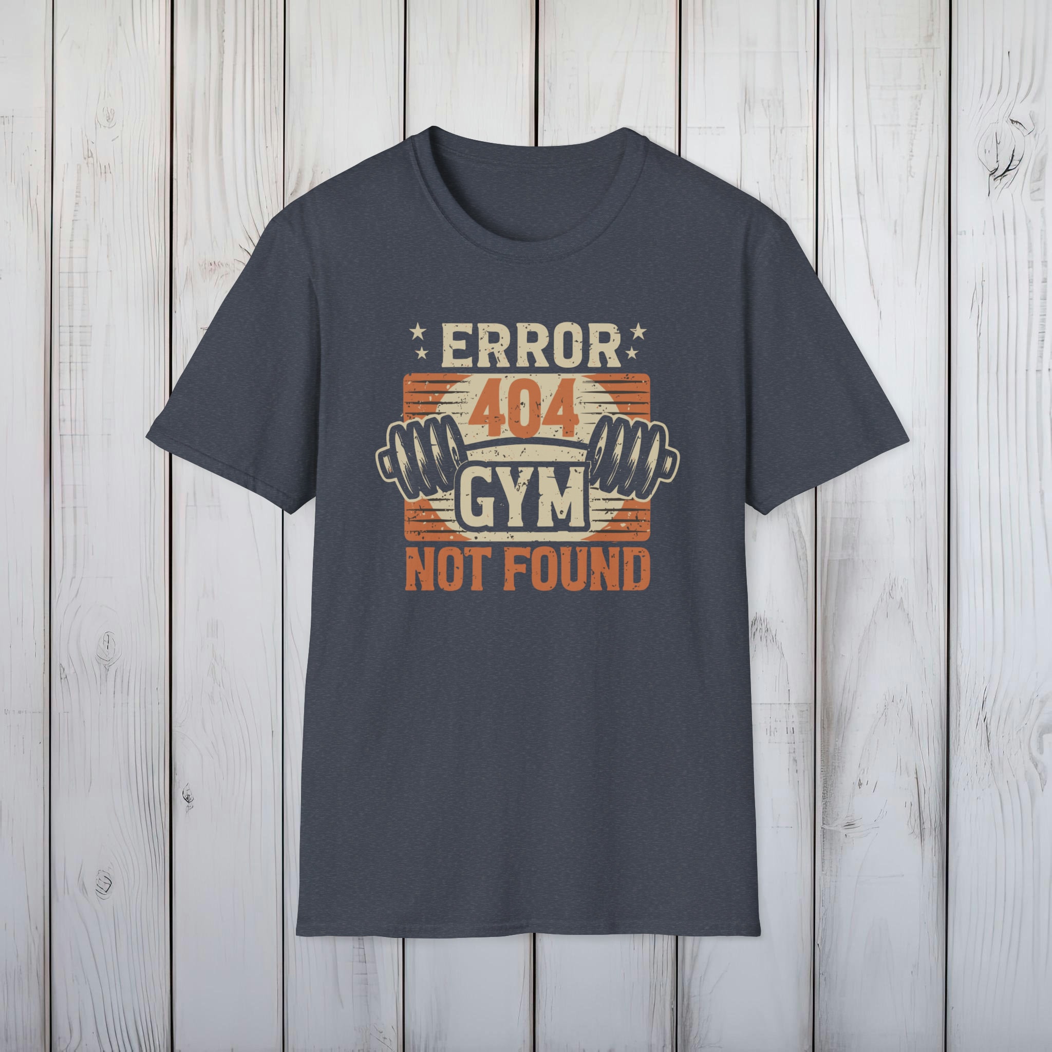 Error 404 Gym Not Found T-Shirt – Comfy No-Gym Tee for Lazy Ones – Perfect Funny Dad Gift – Ultimate Comfort in Black, Grey or Navy