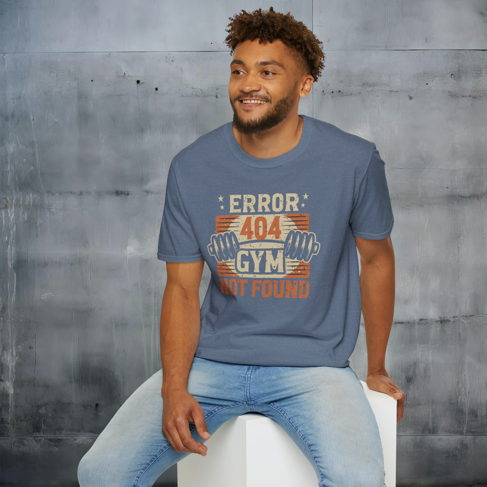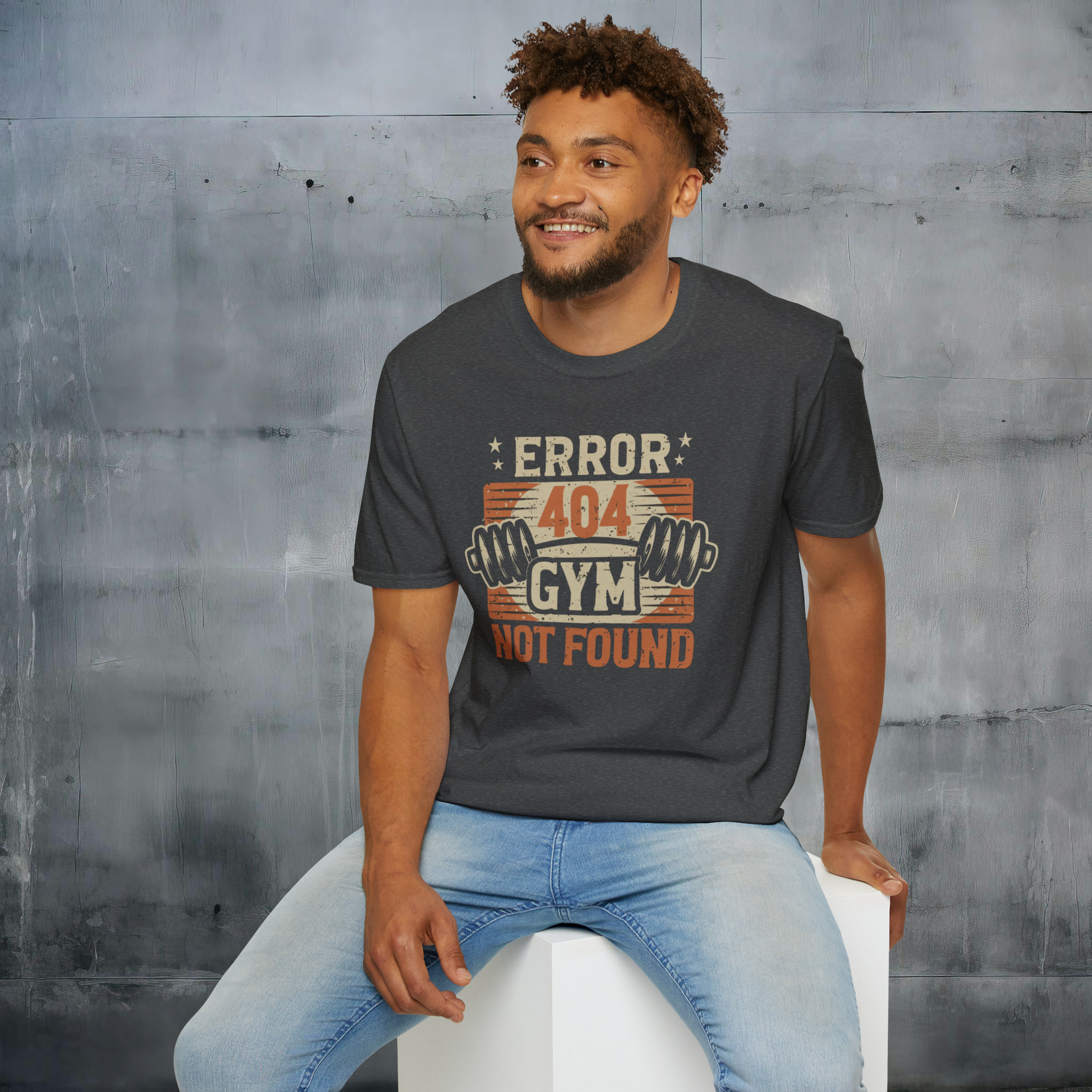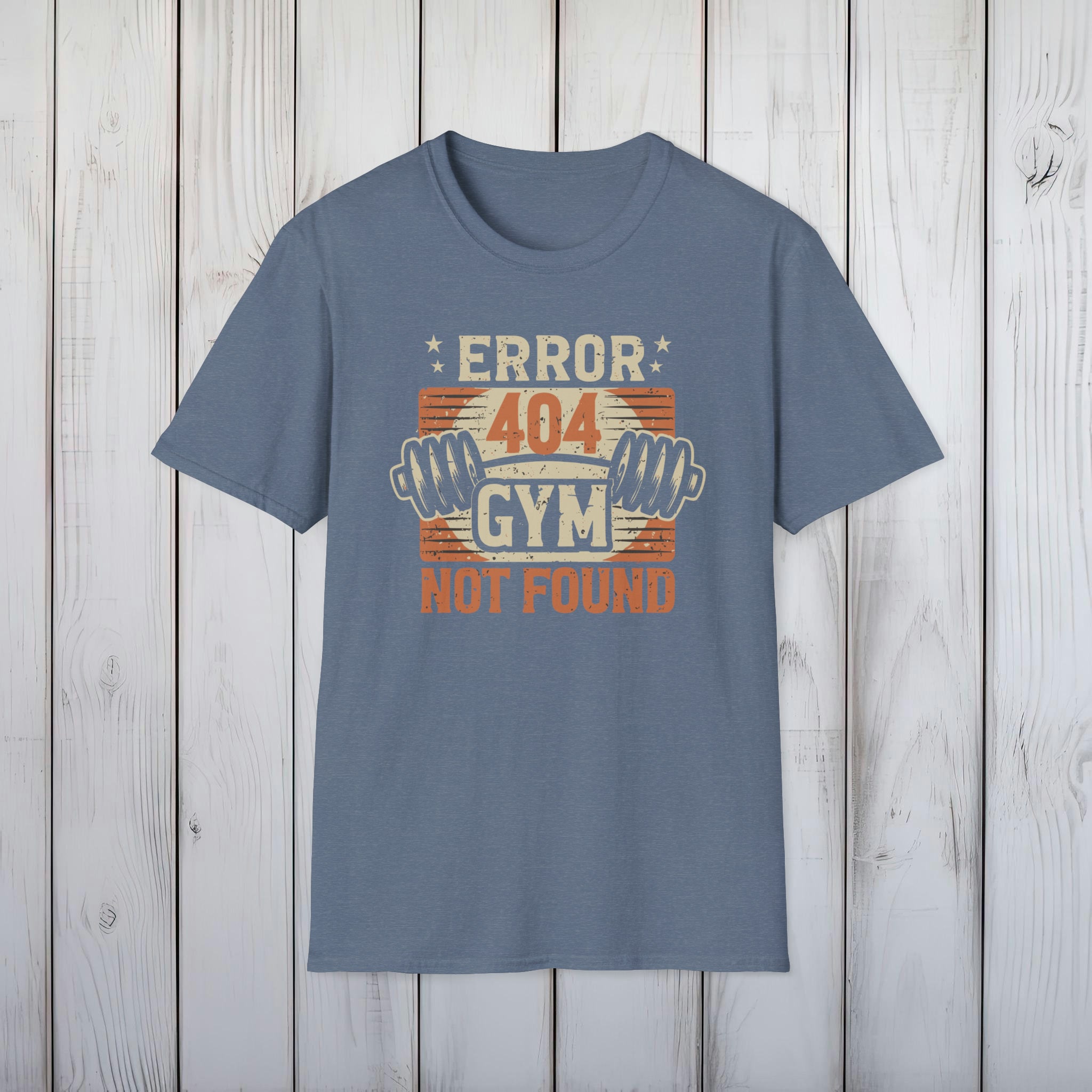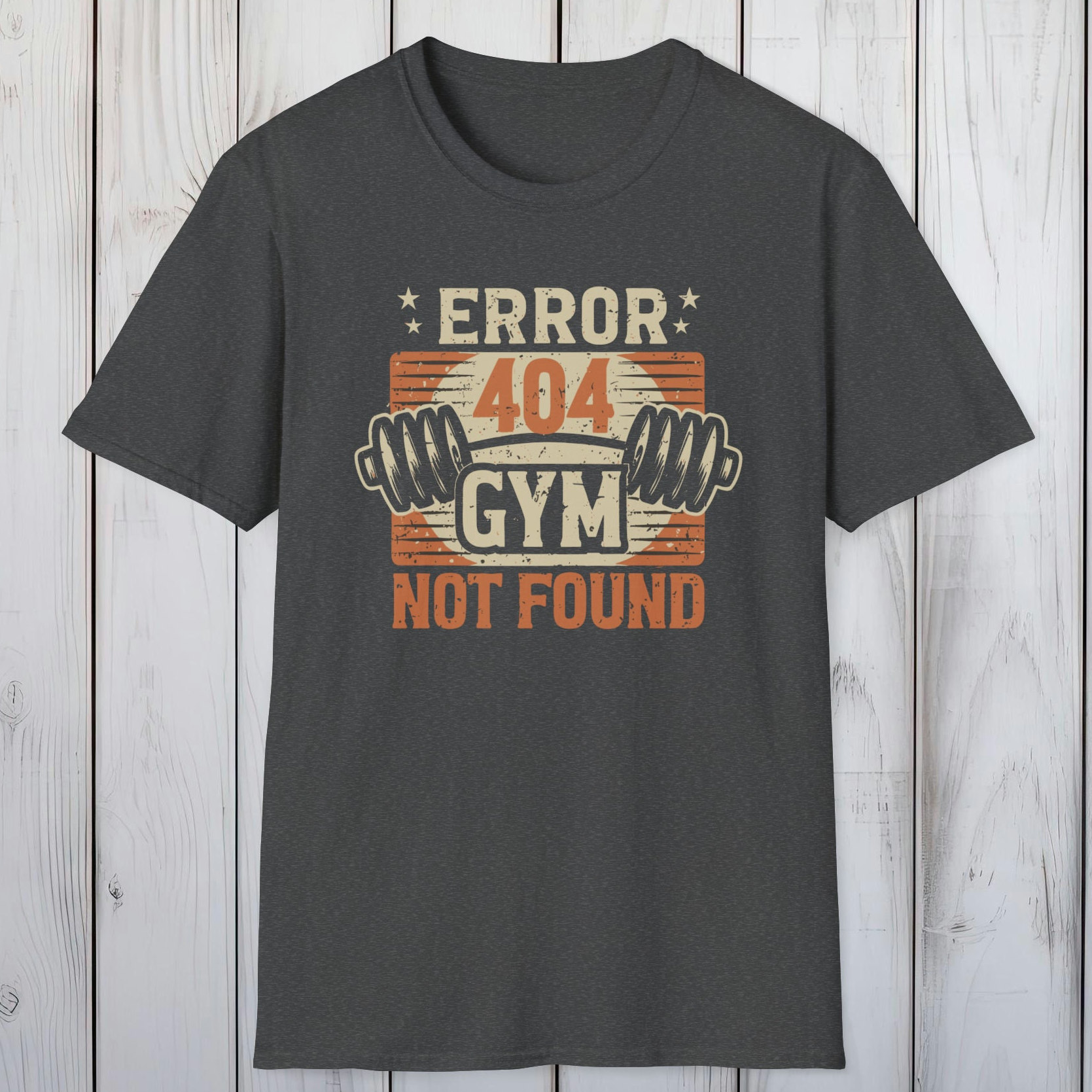 Error 404 Gym Not Found T-Shirt – Comfy No-Gym Tee for Lazy Ones – Perfect Funny Dad Gift – Ultimate Comfort in Black, Grey or Navy