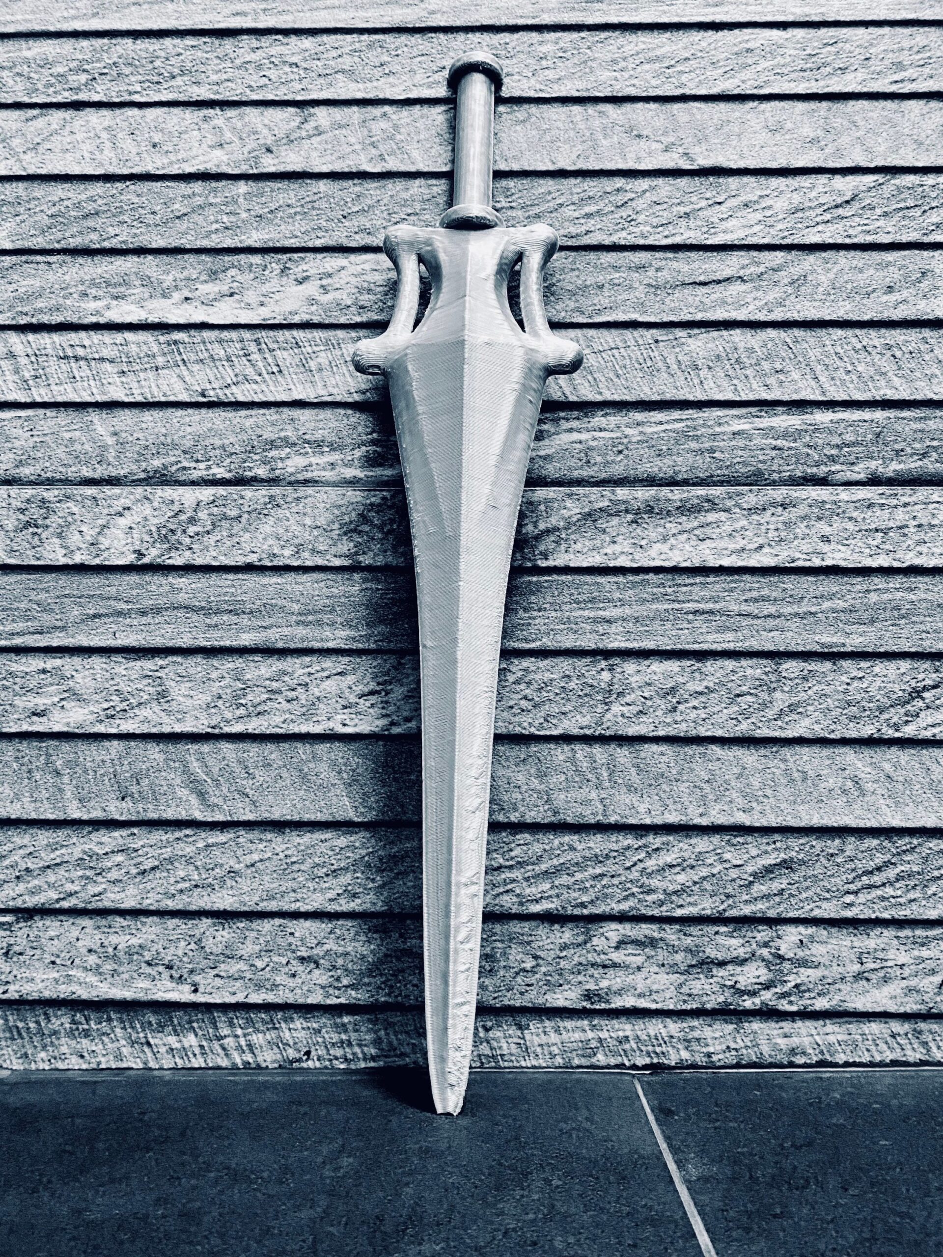 This awesome Cosplay Weapon is made of PLA plastic using a 3D printer. PLA is a ecofriendly, biodegradable plastic derived from plant fibers, which is a renewable organic resources.