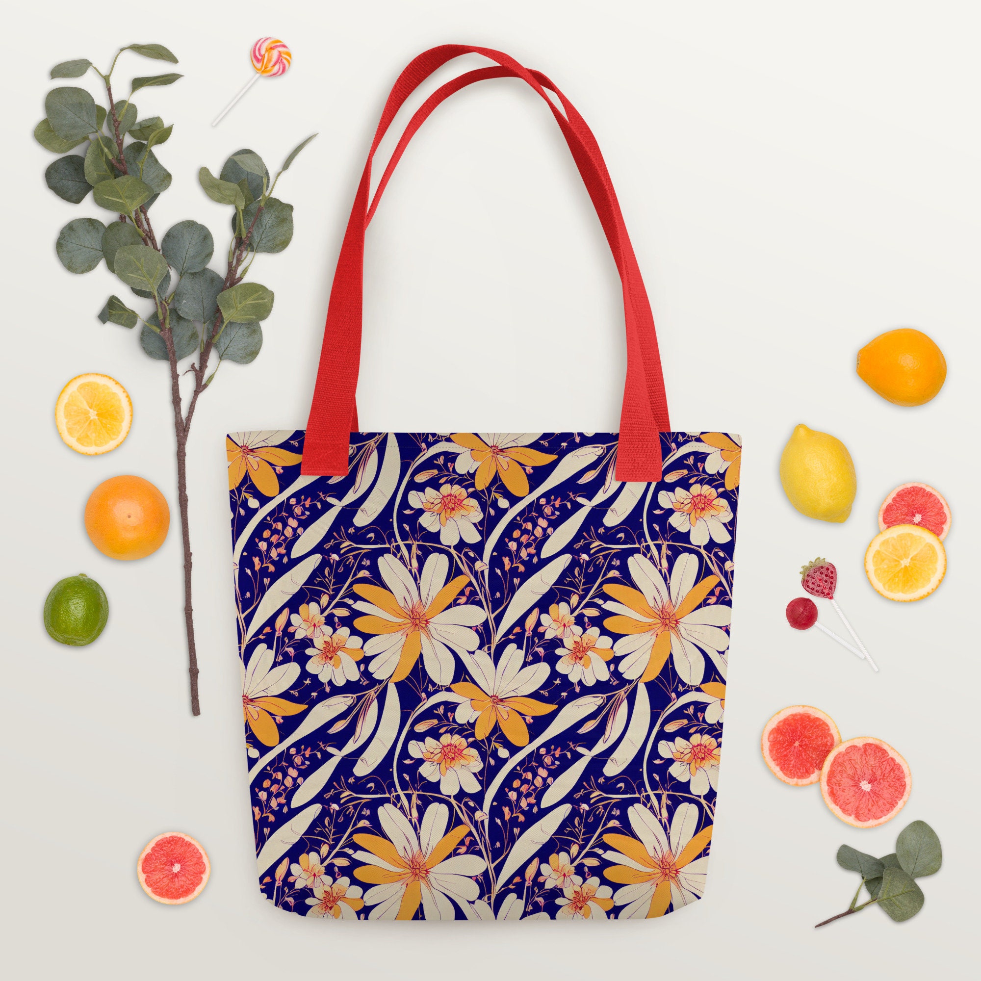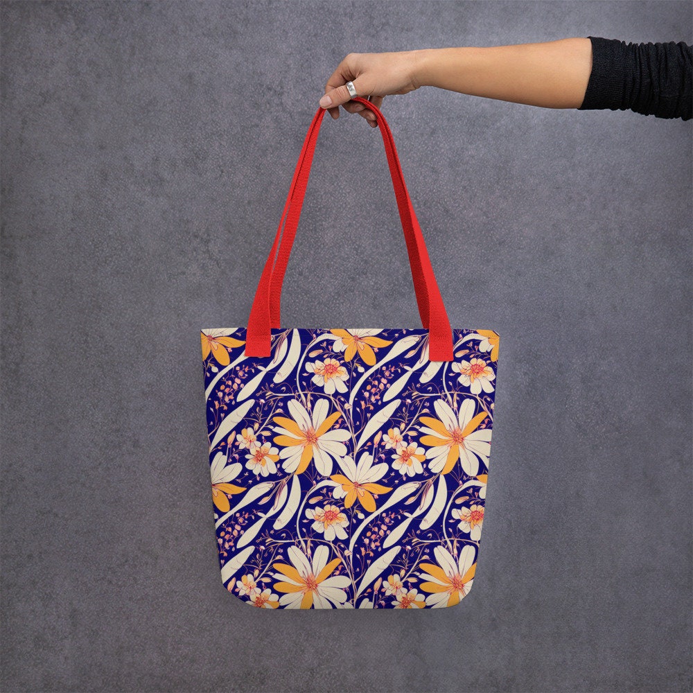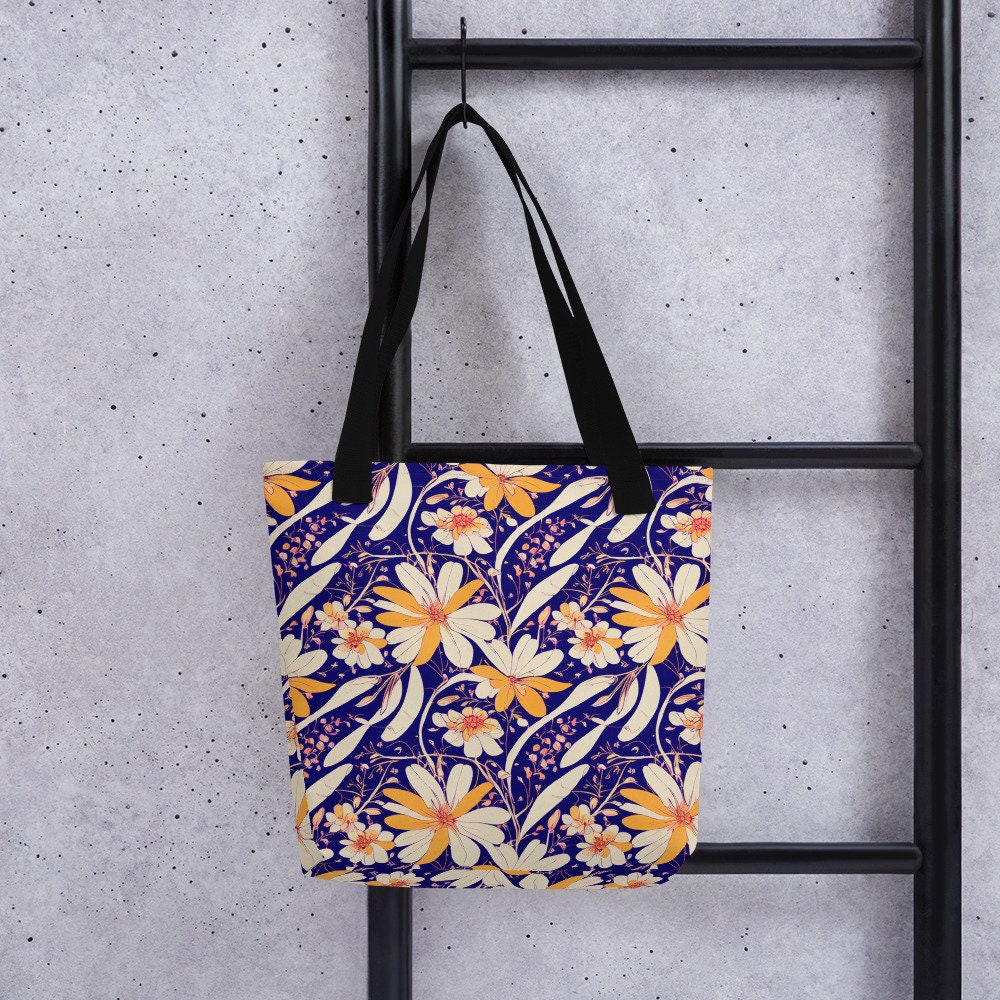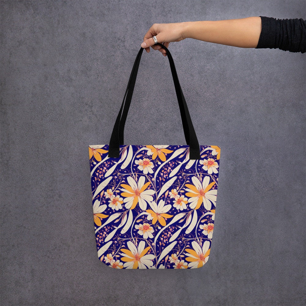 Introducing our beautiful and feminine tote bag, featuring a stunning floral pattern that will complement any outfit. This versatile accessory is perfect for carrying your essentials and adding a touch of springtime to your look.