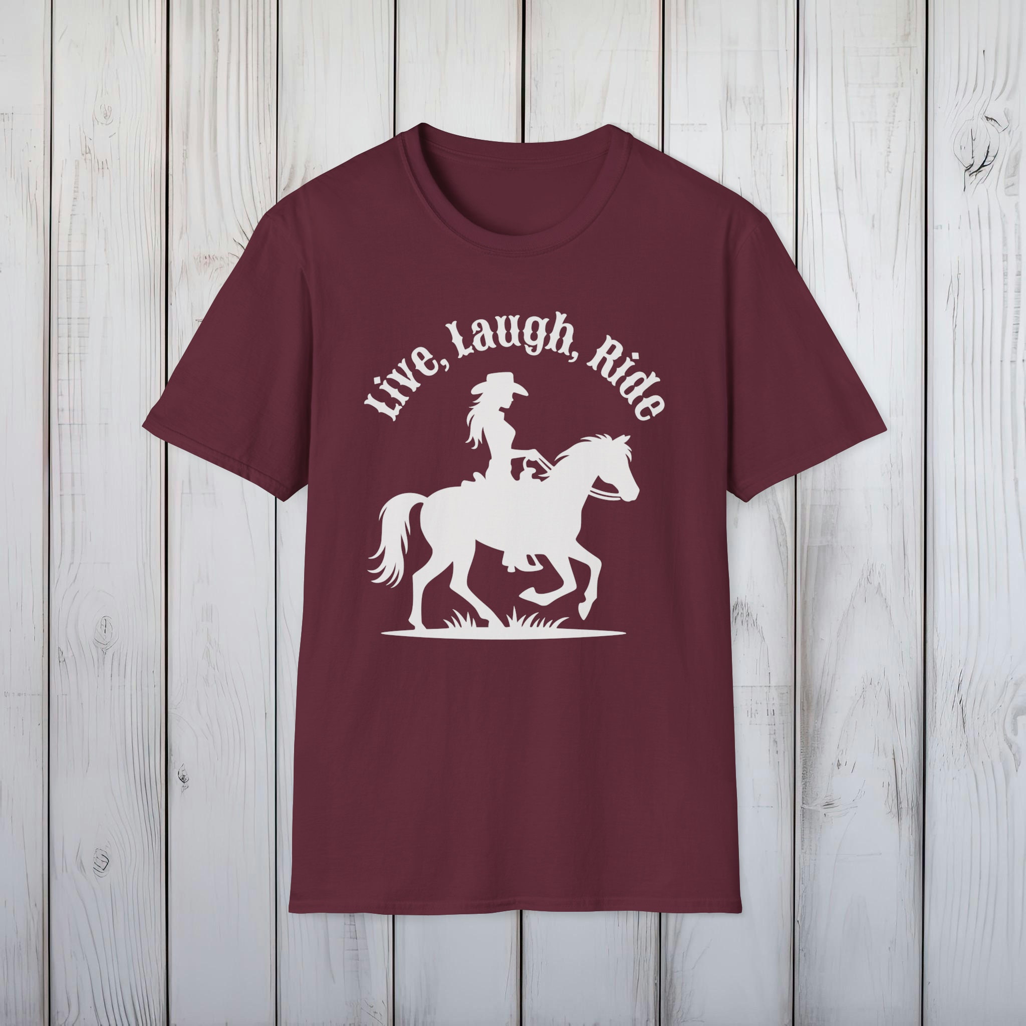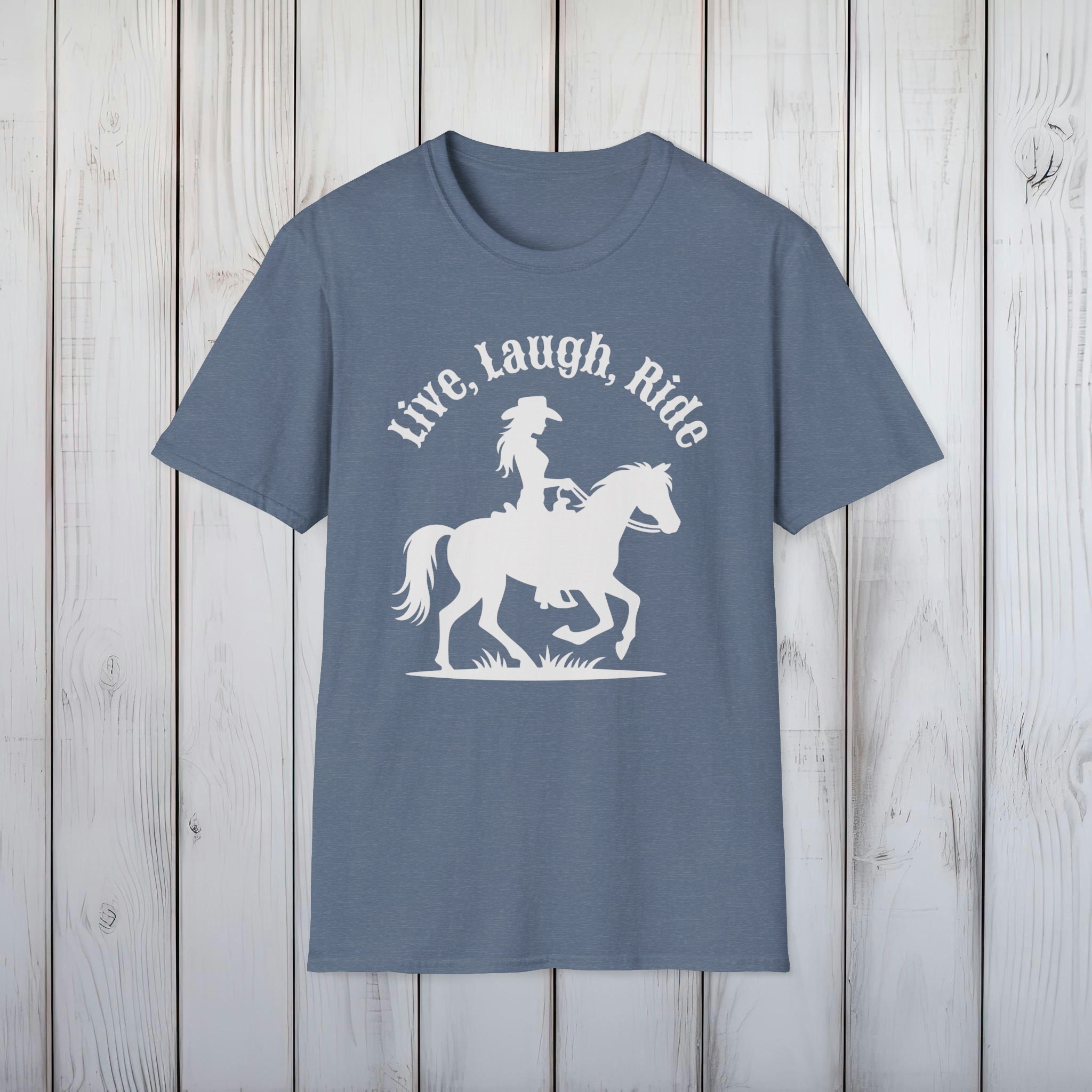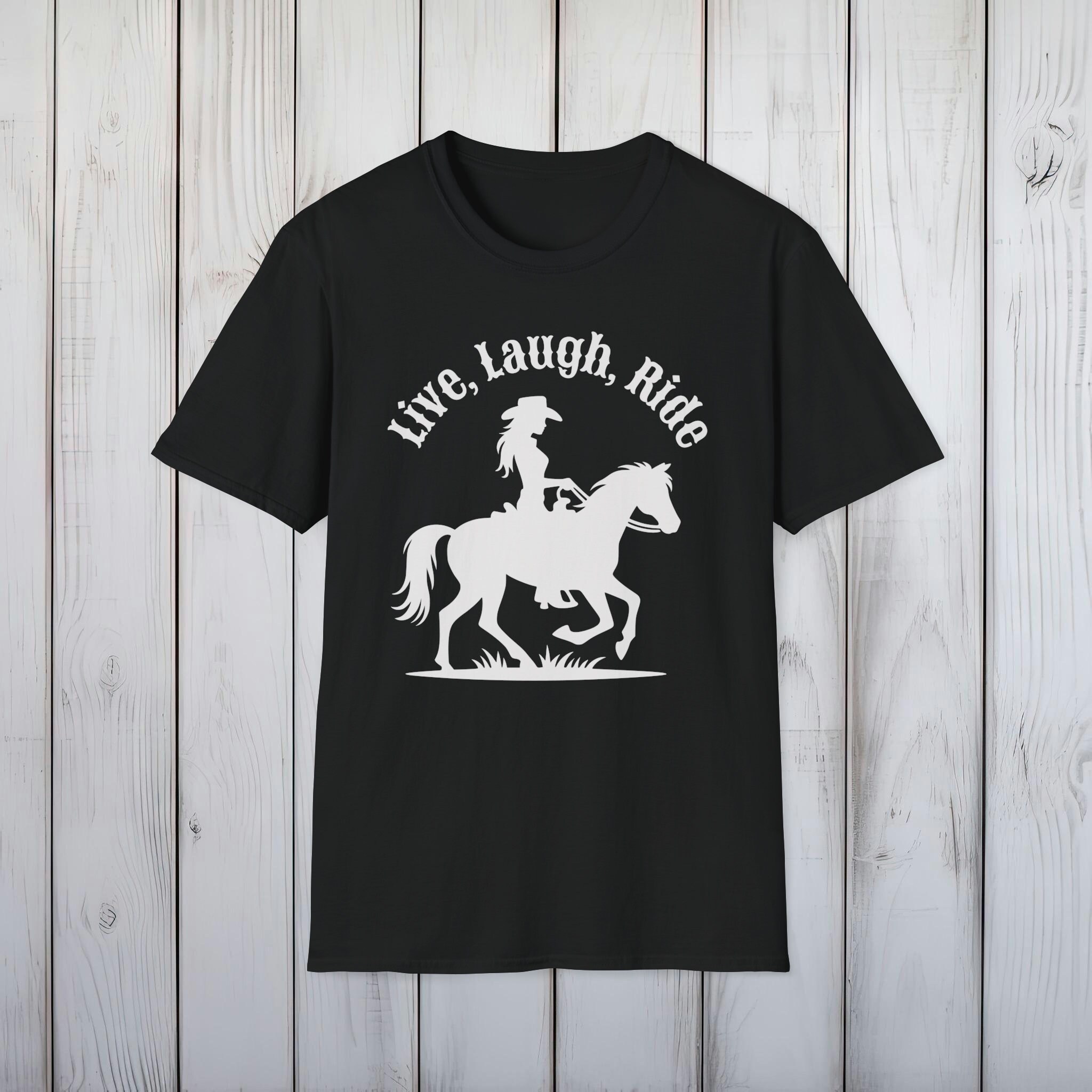 Live, Laugh, Ride T-Shirt: Celebrate Life with a Country Western Twist – Essential Cowgirl Spirit Tee, Sassy Southern Comfort in 9 Colors
