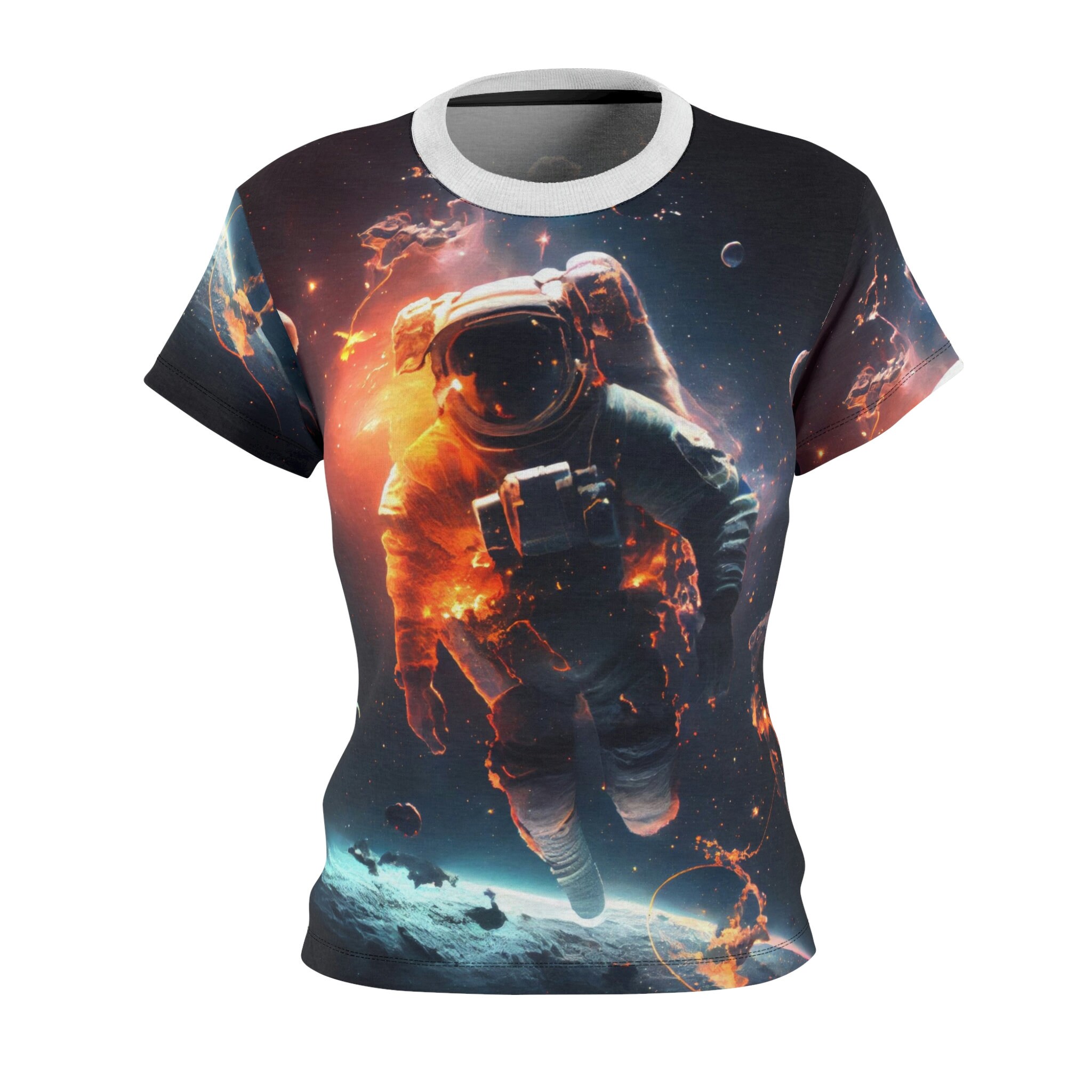 Don't wait – explore our captivating collection of Outer Space Astronaut All-Over Print T-shirts today and let the world know you're a space lover with a taste for the extraordinary and the awe-inspiring. Order your favorites now and embrace your love for the vast side of the cosmos while looking chic and stylish.