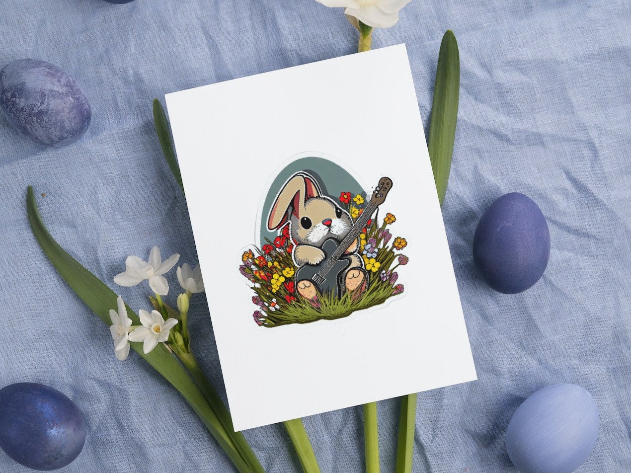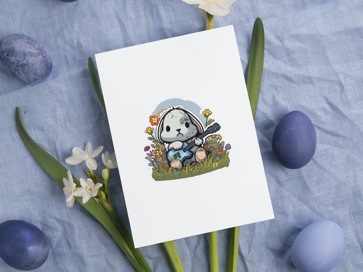 Looking for a fun and unique way to decorate for Easter? Check out our cute Easter bunny sticker sheets with rock music-themed bunnies! Each sheet comes with five adorable stickers featuring bunnies jamming out with electric guitars, drums, and more. These stickers are perfect for adding some personality to your planner, laptop, or water bottle. Each sticker is made of high-quality vinyl, ensuring that they will last for years to come. Get into the Easter spirit with these cool and fun stickers!