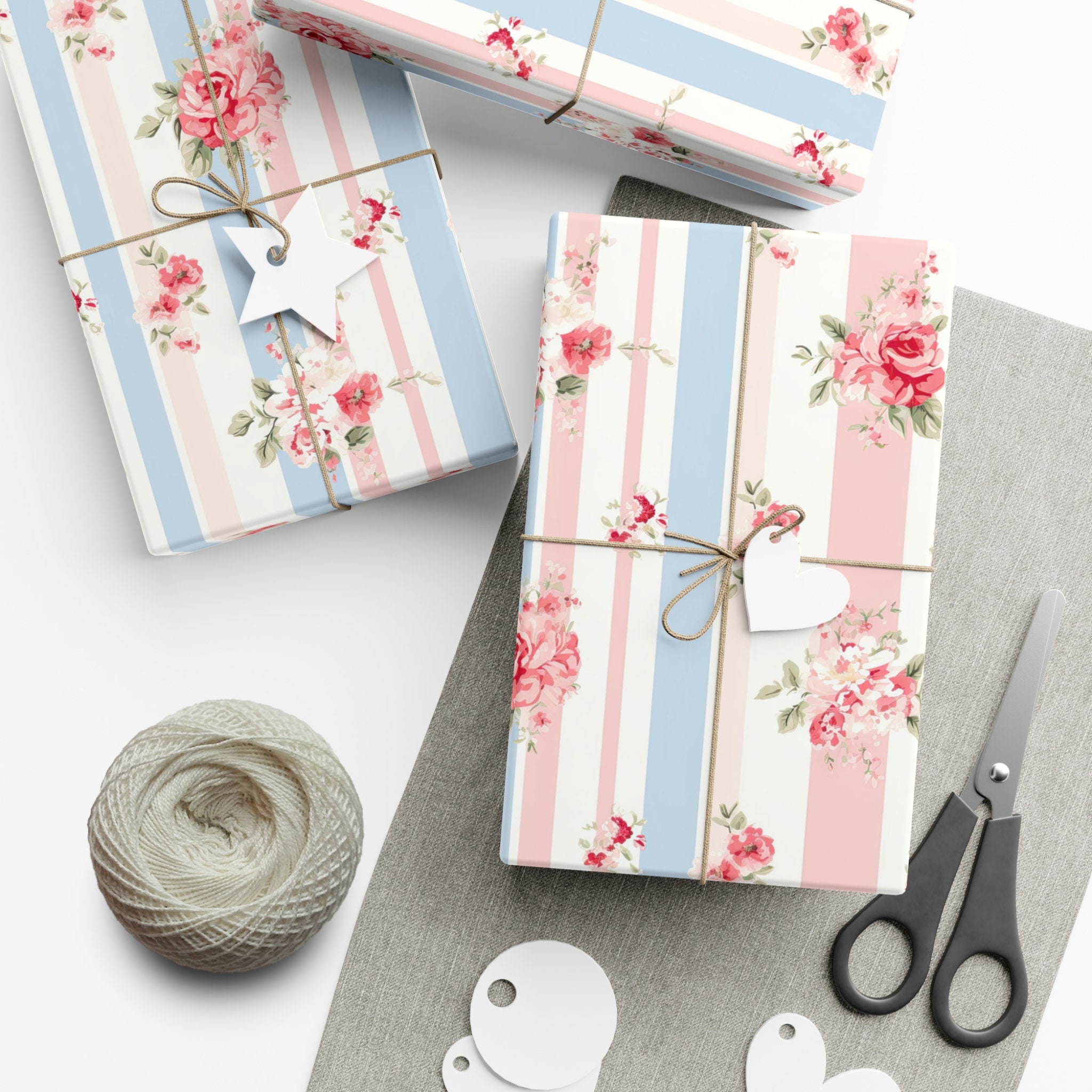 This wrapping paper is not just about covering a present; it's about presenting a gift with a flourish of style and grace. Let the timeless design of shabby chic roses and stripes add a layer of romance to your gifting experience.