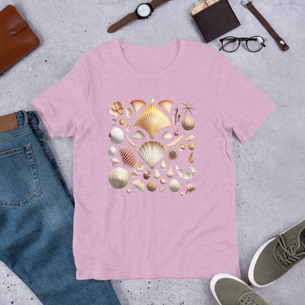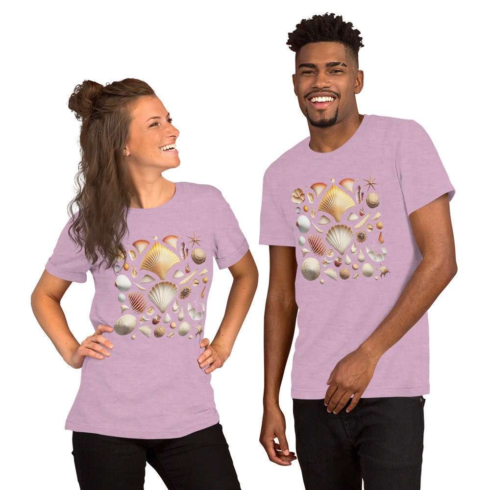 Bring a touch of the ocean to your wardrobe with our beautiful seashell patterned t-shirts! Perfect for beach lovers and ocean enthusiasts, these unique designs feature stunning images of seashells in a variety of colors and patterns. Made from soft, comfortable fabric, these t-shirts are perfect for everyday wear or as a special gift for a loved one. The intricate detailing of the shells is sure to catch the eye and bring a smile to everyone who sees it. Whether you're dressing up for a day at the beach or simply adding a touch of coastal charm to your casual look, these t-shirts are a must-have for anyone who loves the sea. Shop now and embrace your inner beach bum with our stylish seashell patterned t-shirts!