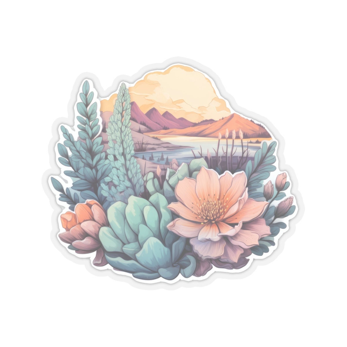 Serene Pastel Nature Vinyl Sticker Decal – Peaceful Soft-Toned Nature Themed Sticker