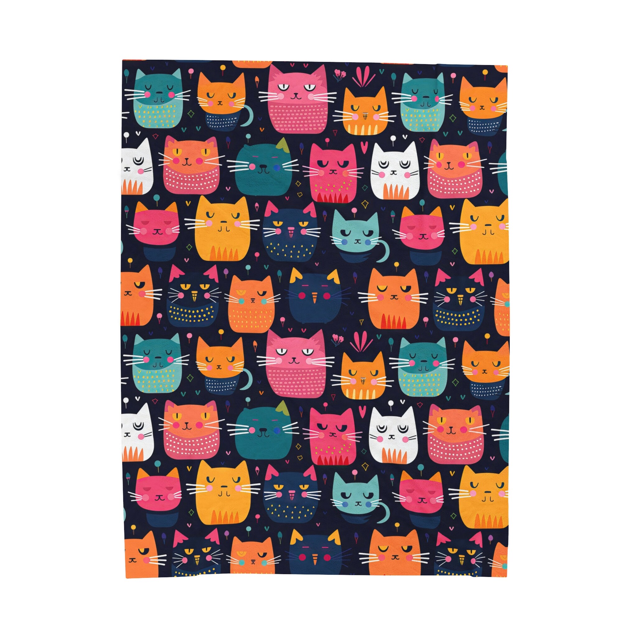 The Cute Cats Velveteen Plush Blanket is a celebration of feline charm and vibrant colors, designed to bring warmth and joy to any cat enthusiast's life. It's the ultimate comfort for lounging and relaxing, featuring a parade of adorable cats that will brighten any room.